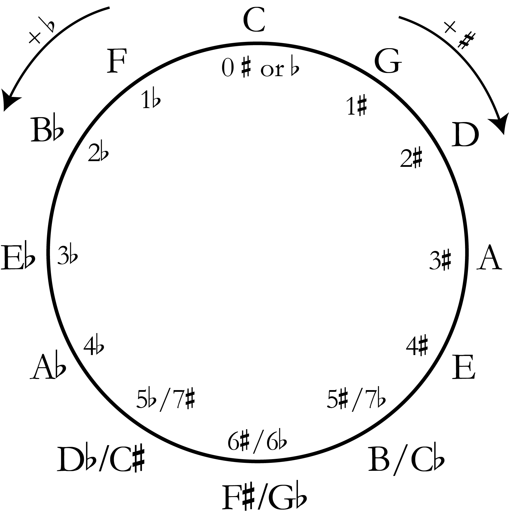 The circle of fifths is an illustration that has been used in music theory pedagogy for hundreds of years. It conveniently summarizes the key signature needed for any key with up to seven flats or sharps.